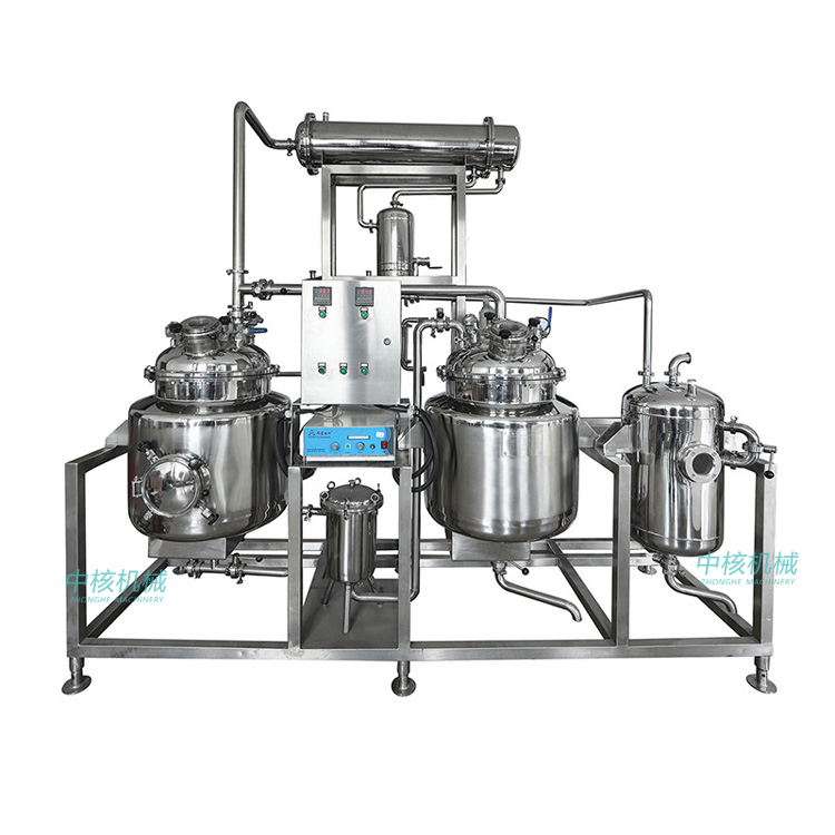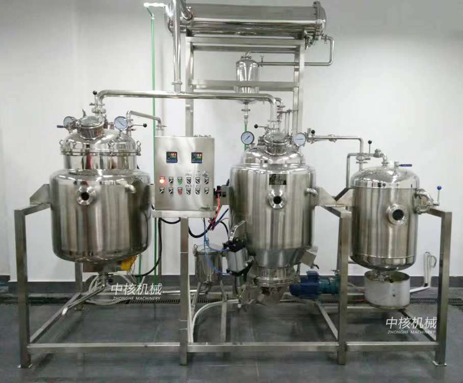 小型提取浓缩机组适用于医药保健、植物、生物制药等行业的常压、微压、水煎、热回流强制循环、植物精油、芳香油成分的提取浓缩及有机溶剂回收等多种工艺,设备符合GMP标准,主要适用于高校、研究所和企事业单位实验室研发及中小试生产线。