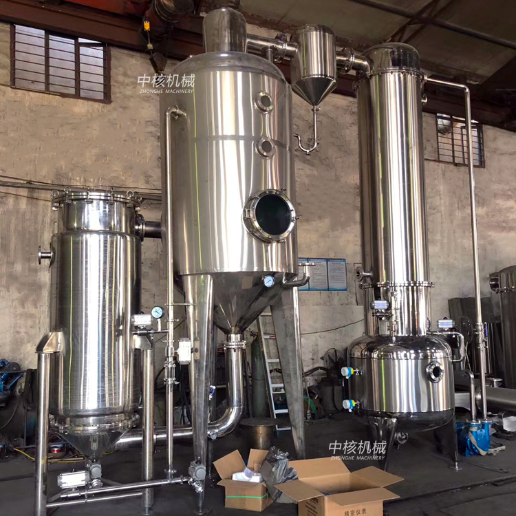 2、浓缩液料:本设备采用外加热自然型循环式与真空负压蒸发方式,蒸发速度快,浓缩比重可达1.2;液料在全密封状态无泡沫浓缩,本设备浓缩出来的药液,具有没有污染,药味浓的特点,而且清洗方便(打开加热器的上下盖即可进行清洗)。本设备操作简单,占地面积小。加热器,蒸发器采用不锈钢保温结构,保温采用聚胺脂发泡,外表面磨砂亚光处理,符合GMP医药标准。
