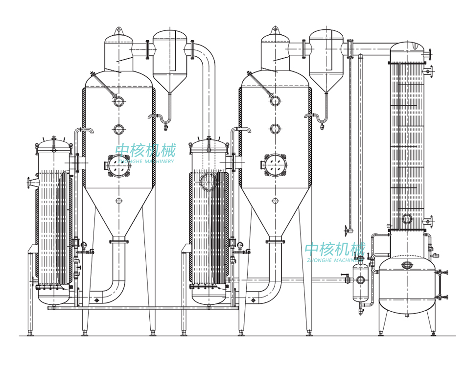 3、采用二效同时蒸发,二次蒸汽得以充分利用,节约能耗,耗能量与单效式相比可节约40%,同时可以回收溶煤。