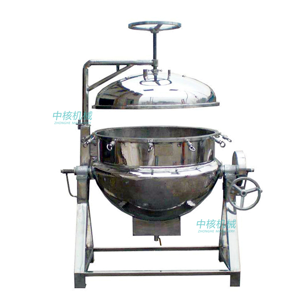 蒸煮锅以一定压力的蒸汽为热源(也可选用电加热),蒸煮锅具有受热面积大、热效率高、加热均匀、液料沸腾时间短、加热温度容易控制,锅体可倾,易出料,密封性好等特点。采用不锈钢制造,配有压力表和安全阀,外型美观、安装容易、操作方便、安全可靠。